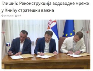 Председник Општине Кнић Срећко Илић и министар за јавна улагања Дарко Глишић потписали су данас уговор о пројекту реконструкције и изградње водоводне мреже у општини Кнић. Вредност тог пројекта је 205 милиона динара, а укупна
